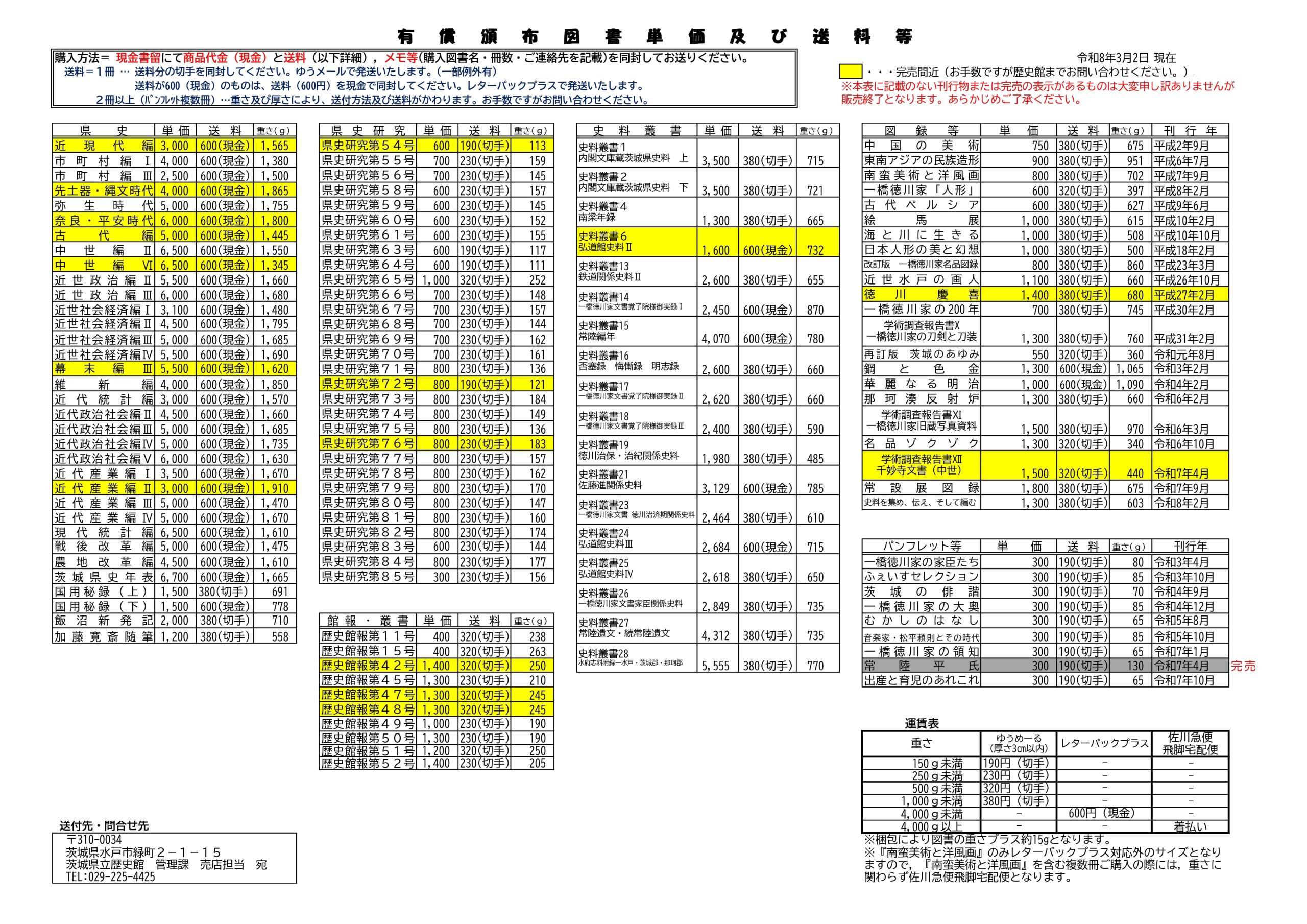 有償頒布図書単価及び送料等(PDF)のダウンロードはこちら →有償頒布図書単価及び送料等(R8.3.2)