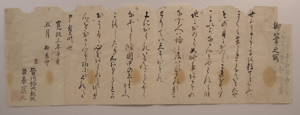 御筆之写〔徳川治保 育子の教諭〕 寛政3年(1791) 当館