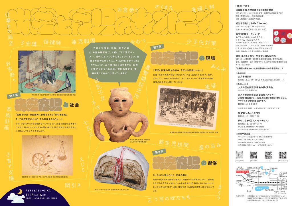 子育て支援策、仕事と育児の両立、お産の場所選び、お祝い事に育児グッズ…。現代においても考えることがつきない、出産と育児のあれこれに人々はどう向き合ってきたのでしょうか。江戸時代から現代までの、出産と育児にまつわる社会と習俗の変化を、資料を通じてあれこれ探っていきます。
