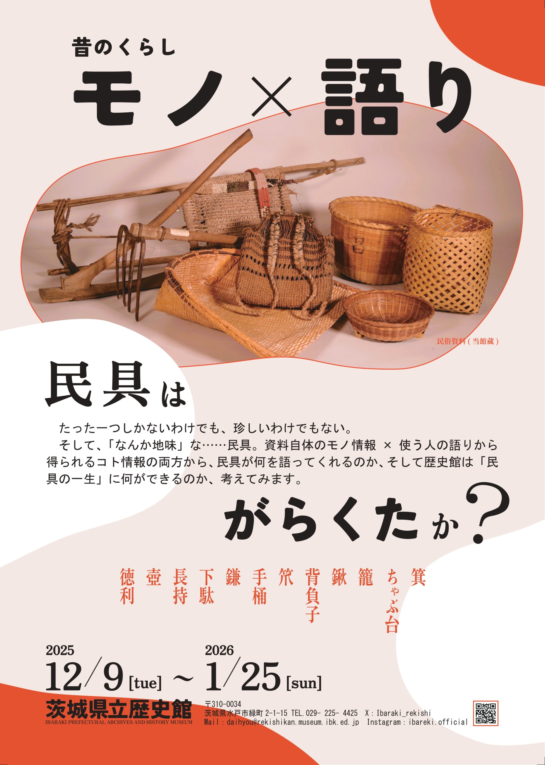 会期|令和7年12月9日(火)~令和8年1月25日(日) たった一つしかないわけでも、珍しいわけでもない。そして、「なんか地味」な・・・民具。資料自体のモノ情報×使う人の語りから得られるコト情報の両方から、民具が何を語 … 続きを読む モノ×語り —民具はがらくたか?―